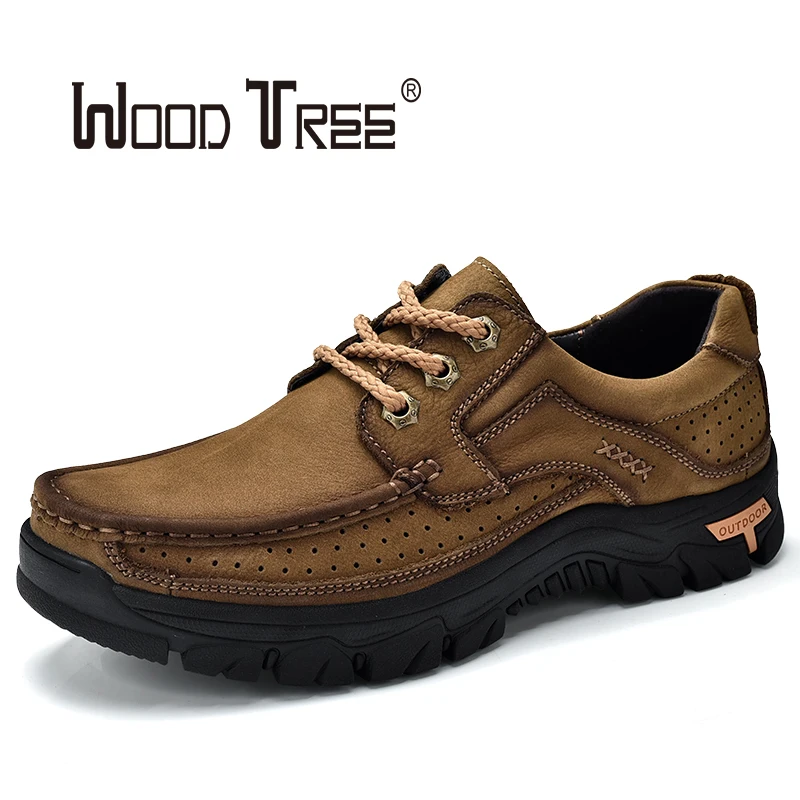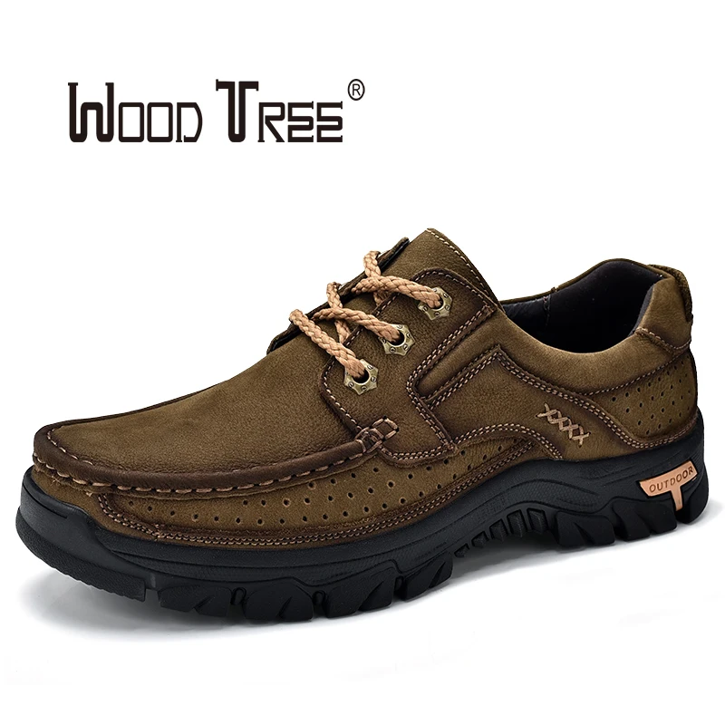 WOODTREE Men Hiking Shoes Comfortable First Layer Cowhide Leather Outdoor Sneakers Men Breathable H