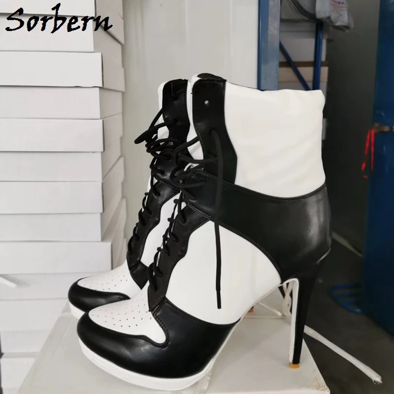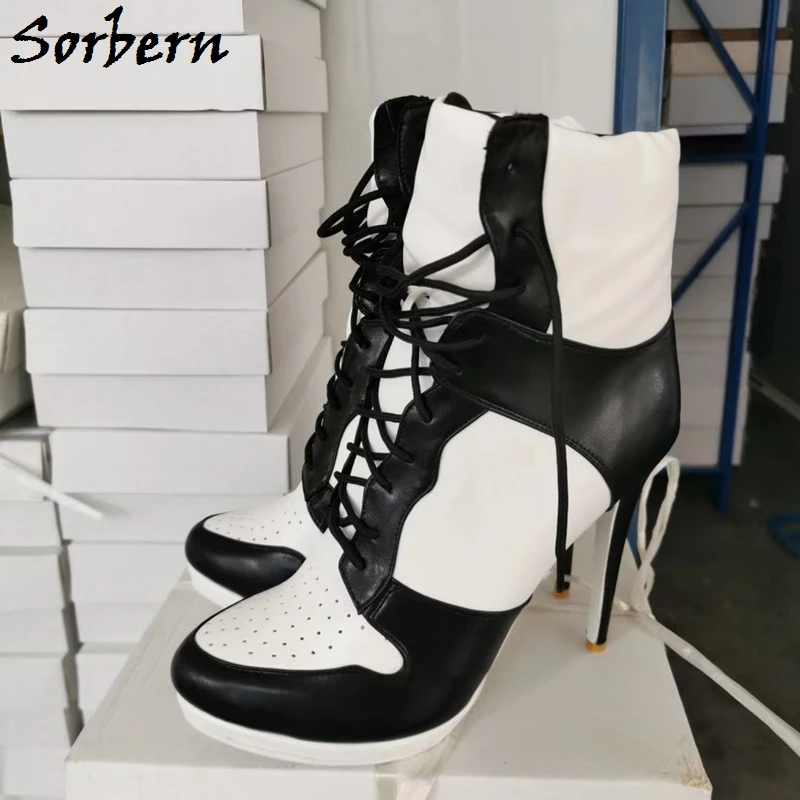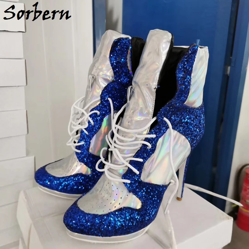 Sorbern Holo Silver High Heel Sneaker Booties Ankle High Cutom Colors Stilettos Platform Big Size G